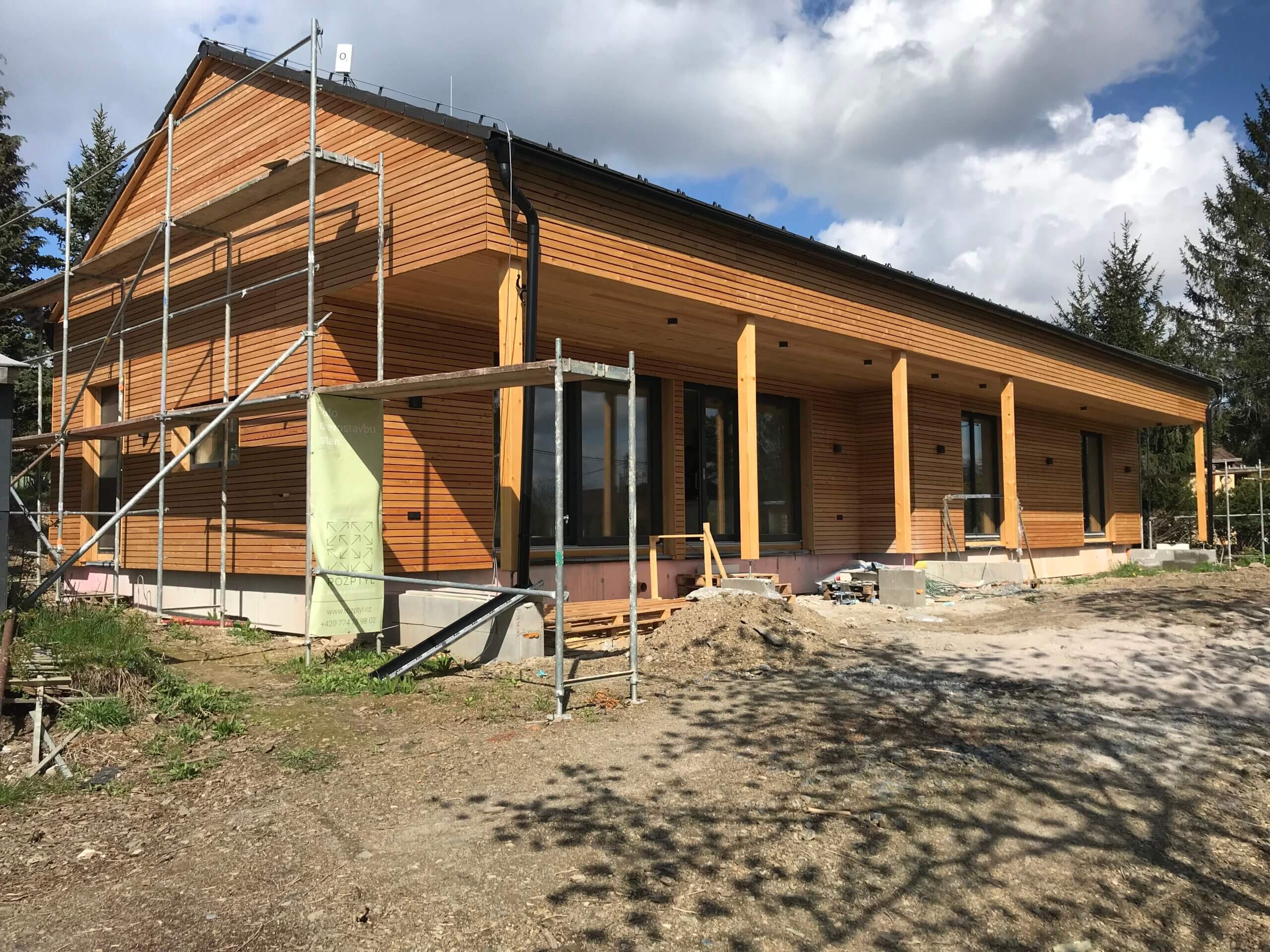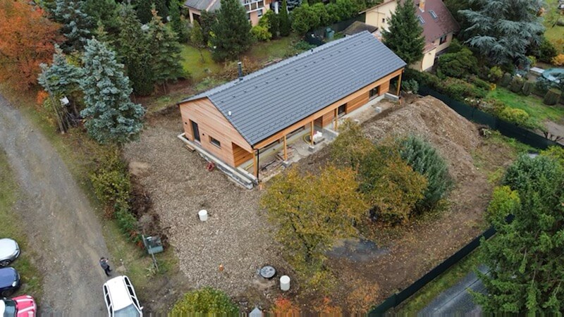 Na pozemek v Moravském krasu je velmi špatný přístup, tudíž jsme v tomto případě museli panelovou montáž nahradit montáží staveništní – celá dřevostavba je sestavena z jednotlivých materiálů až na stavbě. Což pro nás nebyla žádná překážka.